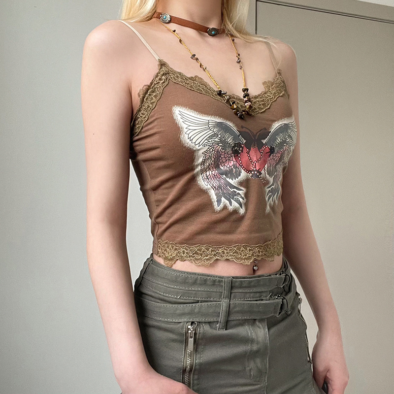 Personalisierter Love Wing Print Mini-Trägertop mit Spitze, Kontrastpanelen und purem Verlangen für einen verführerischen Look.